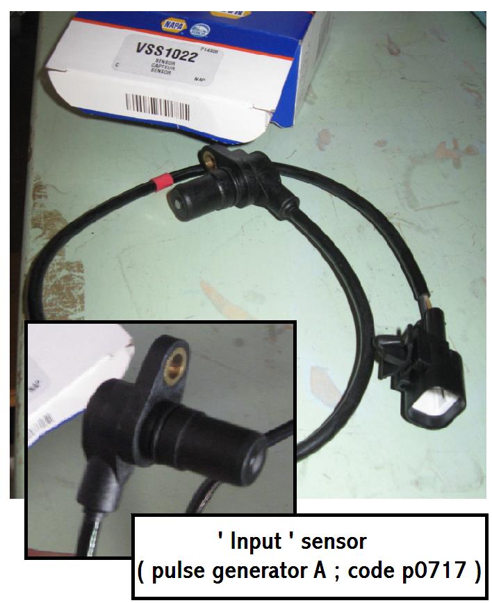 Diagnostics: Code(s) read at local Autozone. Found p0717 (also related p0733 & p0734) 'Turbine-Input' shaft speed sensor A. Also called 'pulse generator A' sensor or VSS (?)
