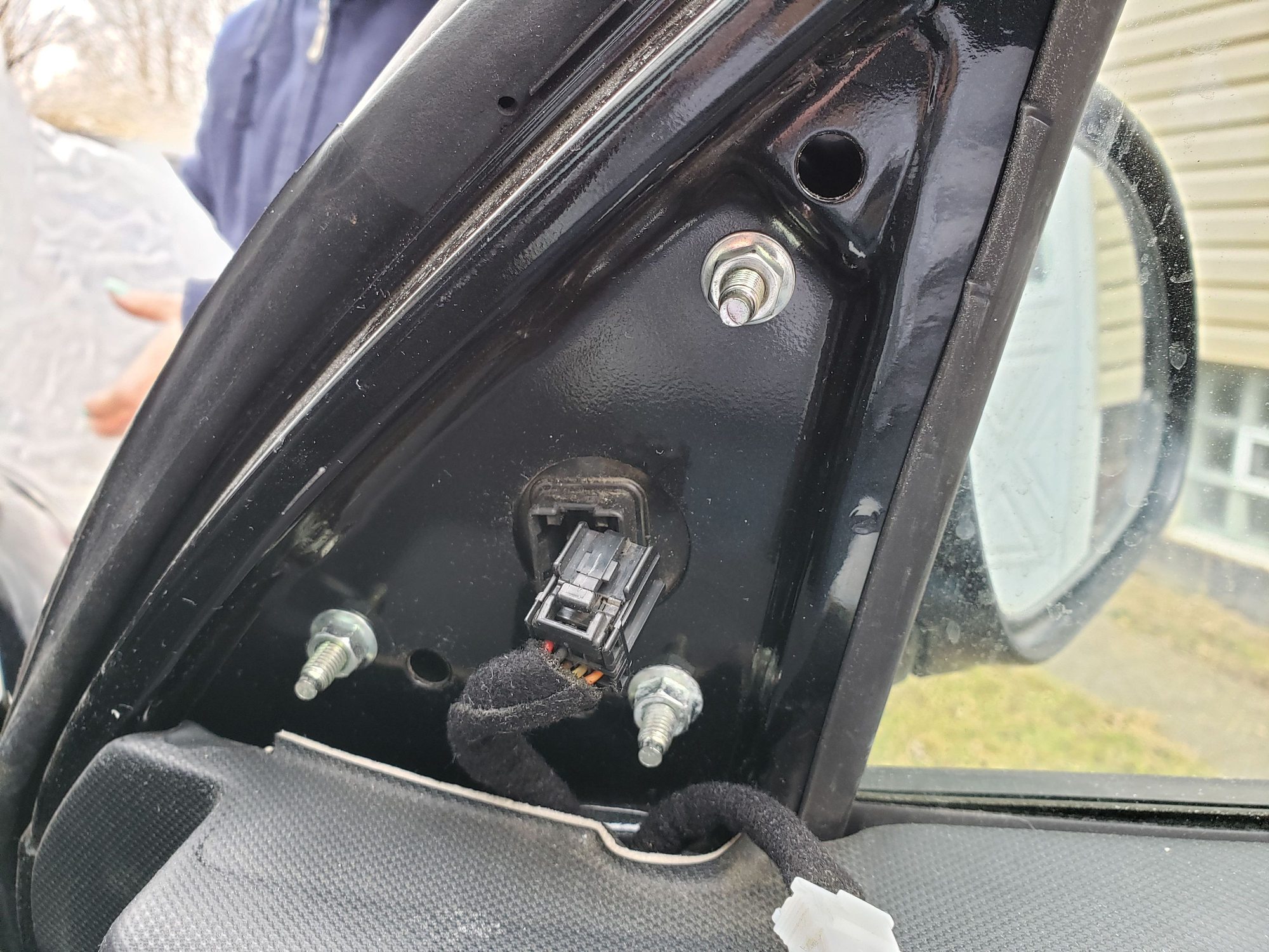 - Pull the old side mirror assembly away from the door.